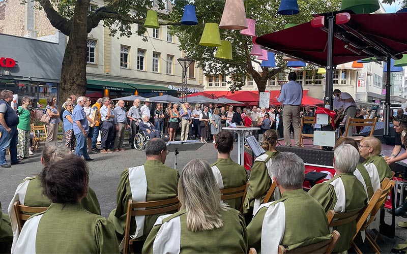 - 12:00 Uhr Glockenläuten und Grußwort des Schirmherrn OB Frank Meyer